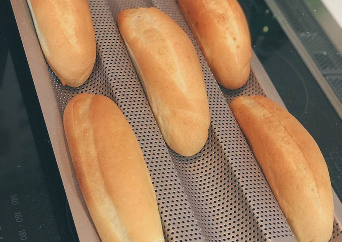 - Preheat the oven 15’ at 220-230 degree C and bake for 20-25’ with steam. If your oven doesn’t have steam function, you can create steam by spraying a lot of water when u put the bread inside the ovem after preheating. Then after baking for 10’, open and spray a lot of water then close immediately. This will create oven spring for the bread. Make sure to turn the tray after 15’ to get the best color and crunchiness for your banh mi.