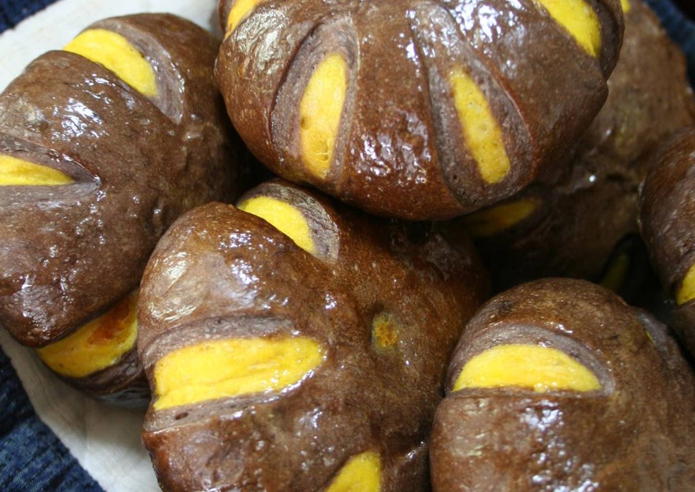 - Wrap the cocoa dough around the kabocha-filled kabocha dough and seal well.