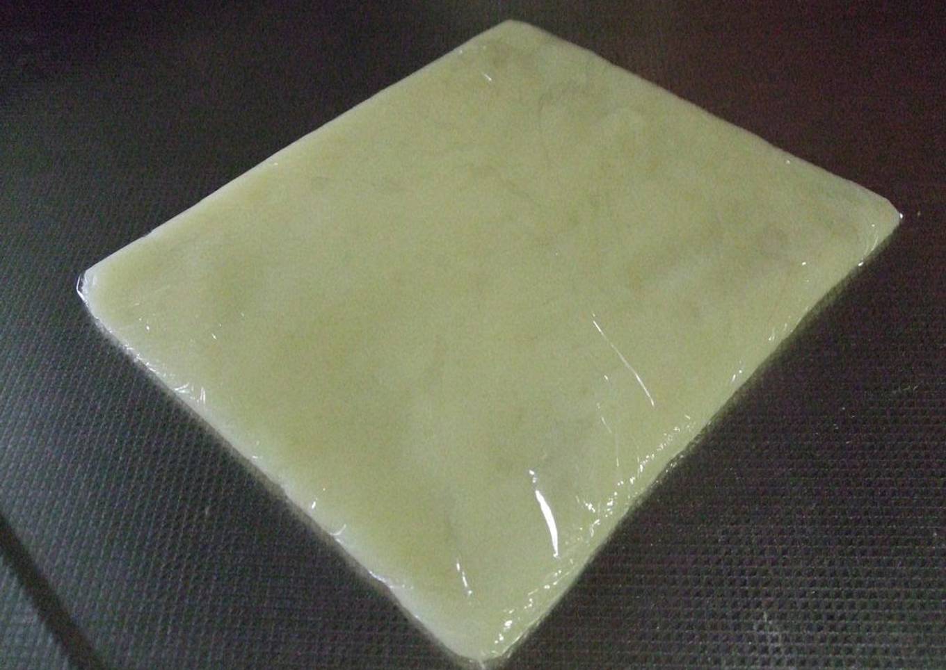 - It'll be thick and glossy after kneading. Wrap, make into a 15 x 18 cm shape, and once it's cooled, place in the freezer.
