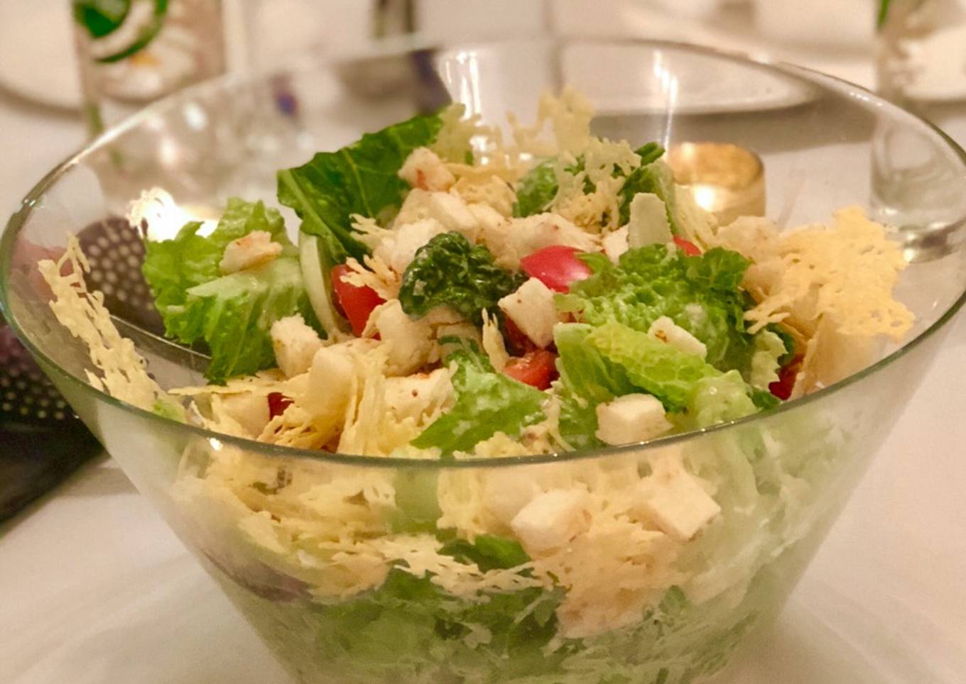 Make your own croutons, Parmesan cheese crisp and caesar dressing – present it nicely to impress your dinner guests🥰
