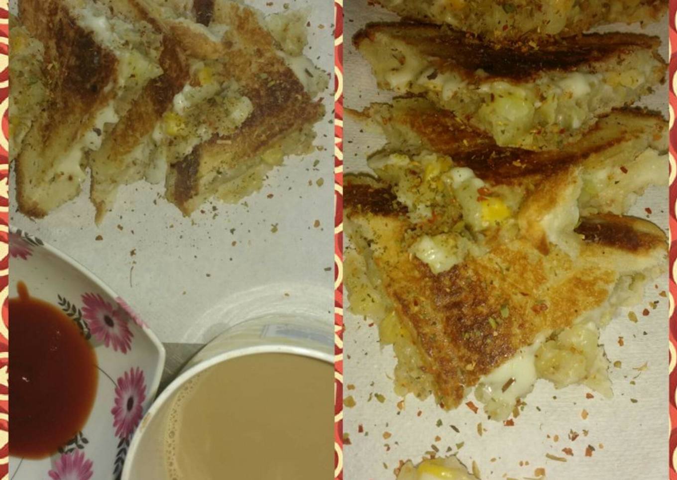 - Cut the sandwich into shape of your choice and serve with tomato ketchup and tea.