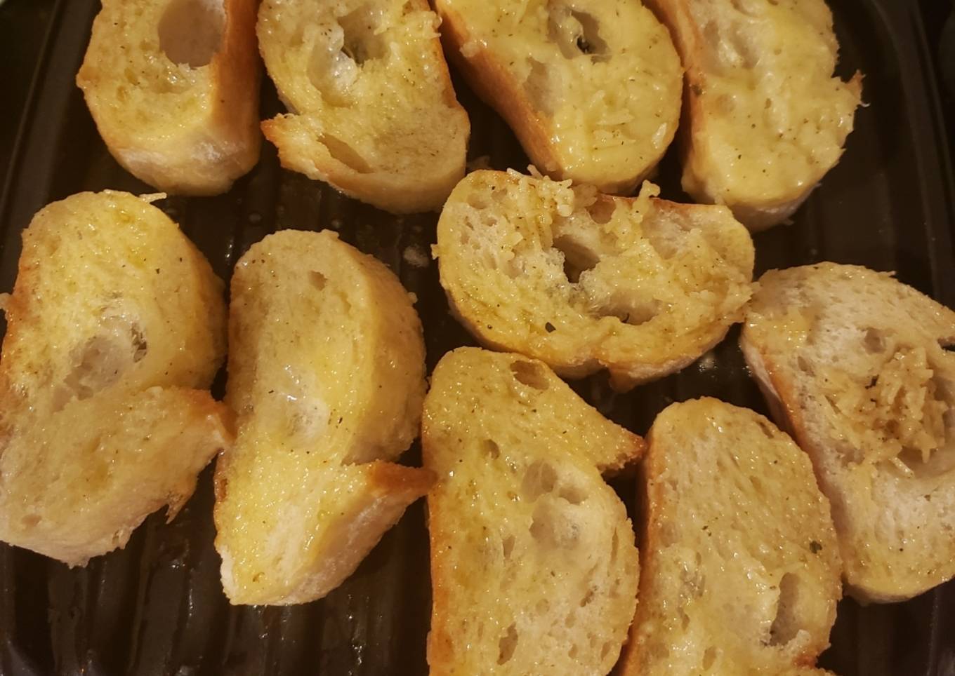 - Slice bread. Melt butter. Mix all ingredients into butter. Spread over bread. Put in George Foreman grill or toaster oven for 4 min.