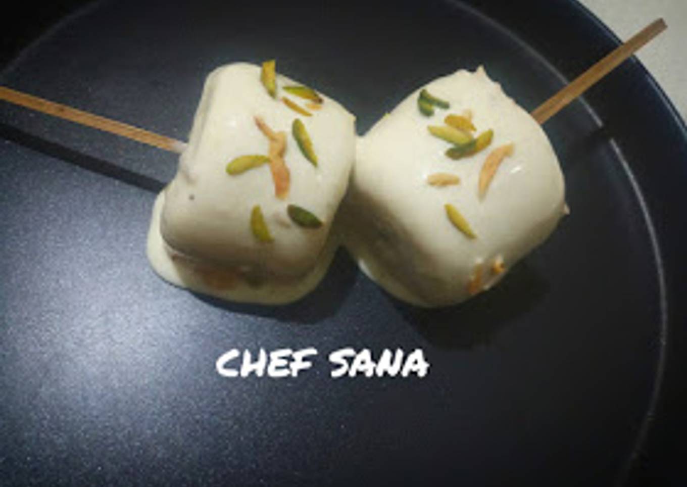 - Take out the Kulfi mould from fridge. Stick the sticks in kulfi, keep the mould in normal water for 30 sec then unmould the kulfi.
