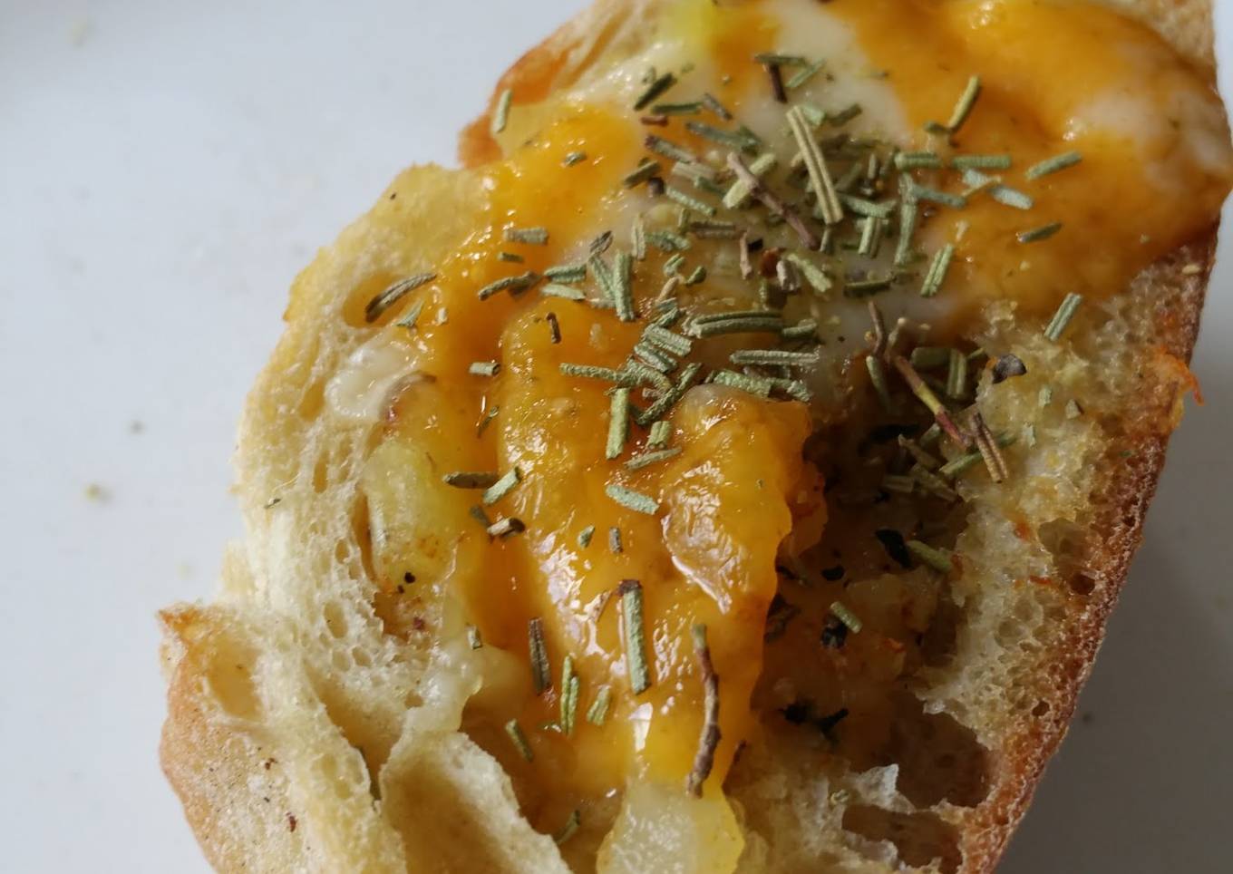 - Bake the bread with potatoes till the cheese is melted then add rosemary to the top